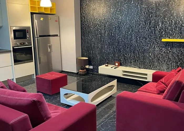 Lägenheten ligger 550 meter från Tiranas klocktorn och Tiranas stora park ligger 2 km bort. Black Pearl Lounge & Bar och Spaghetti house & fish finns inom 200 meter från lägenheten Home Select Tirana 8. Inom bara några steg bort finns Toptani shoppingcenter.